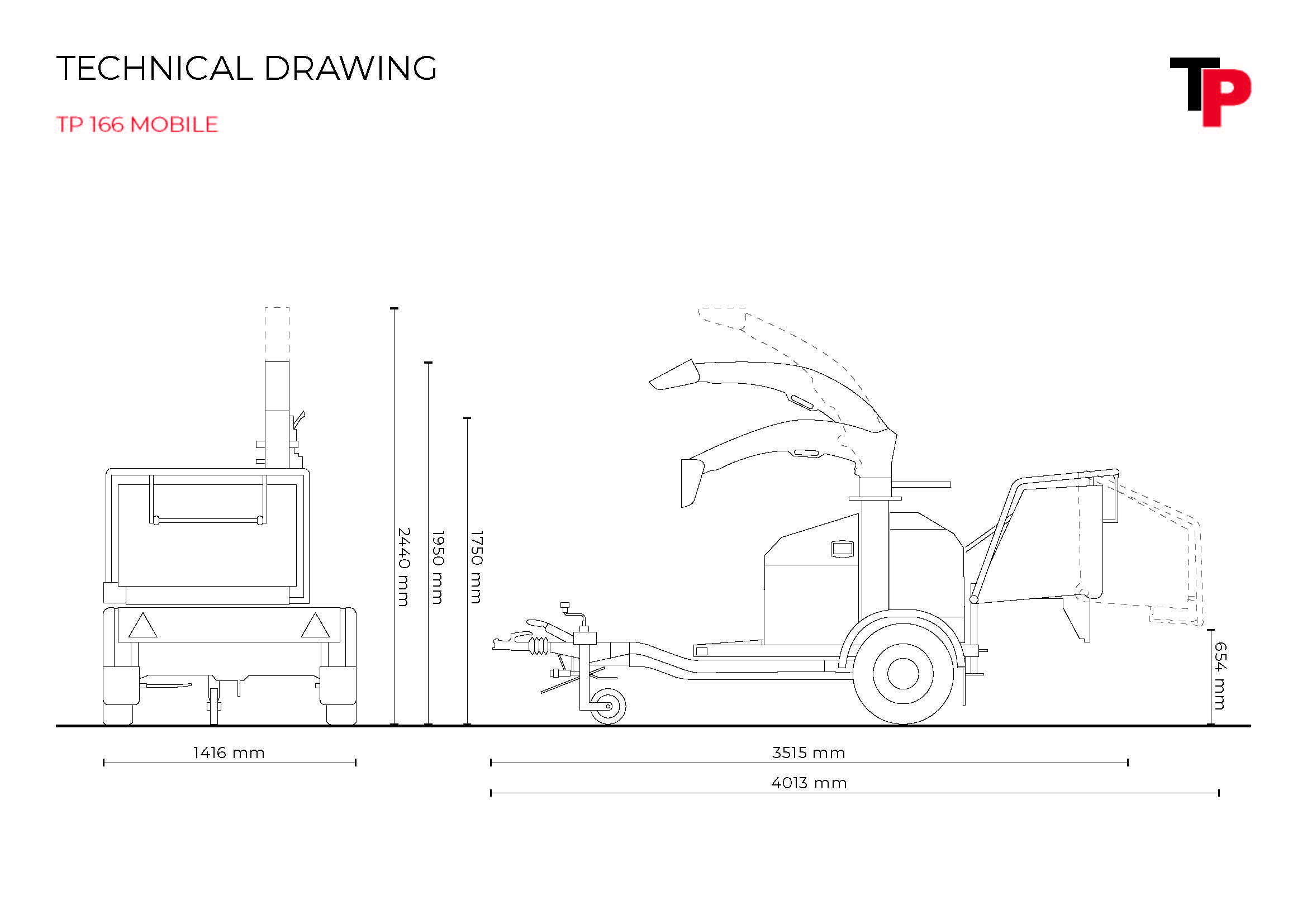 TP 166 MOBILE is ideal for various landscaping tasks for instance green keeping, parc and cemetery maintenance. The 2 hydraulic driven feed rollers give the machine a strong and aggressive in feed. The functions of the stress control system, TP PILOT+, includes hour counter and control of start and stop of the feed rollers.