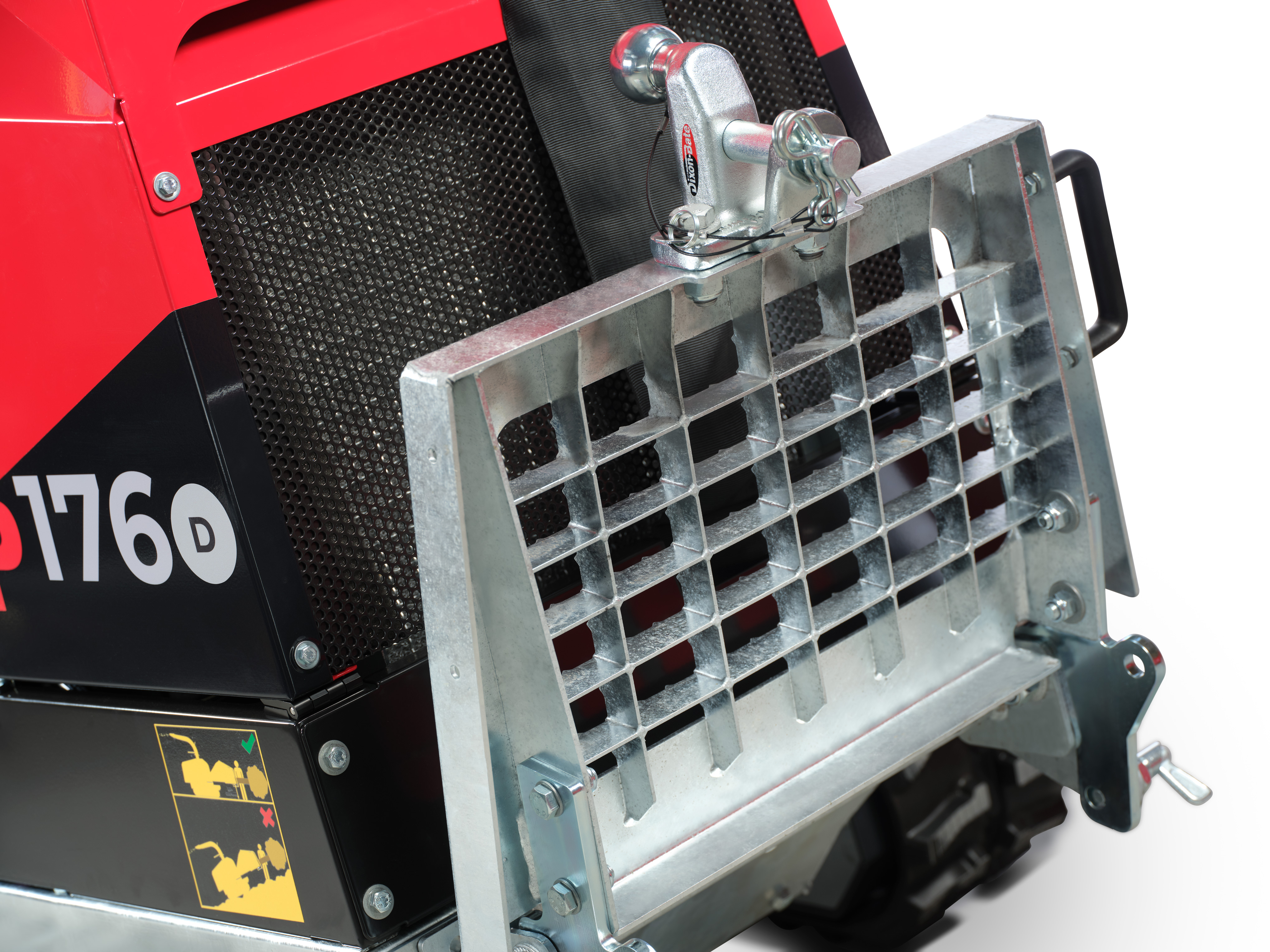 - Manual control panel – The chipper is controlled via the control panel while the operator stands on a safety-activated platform.