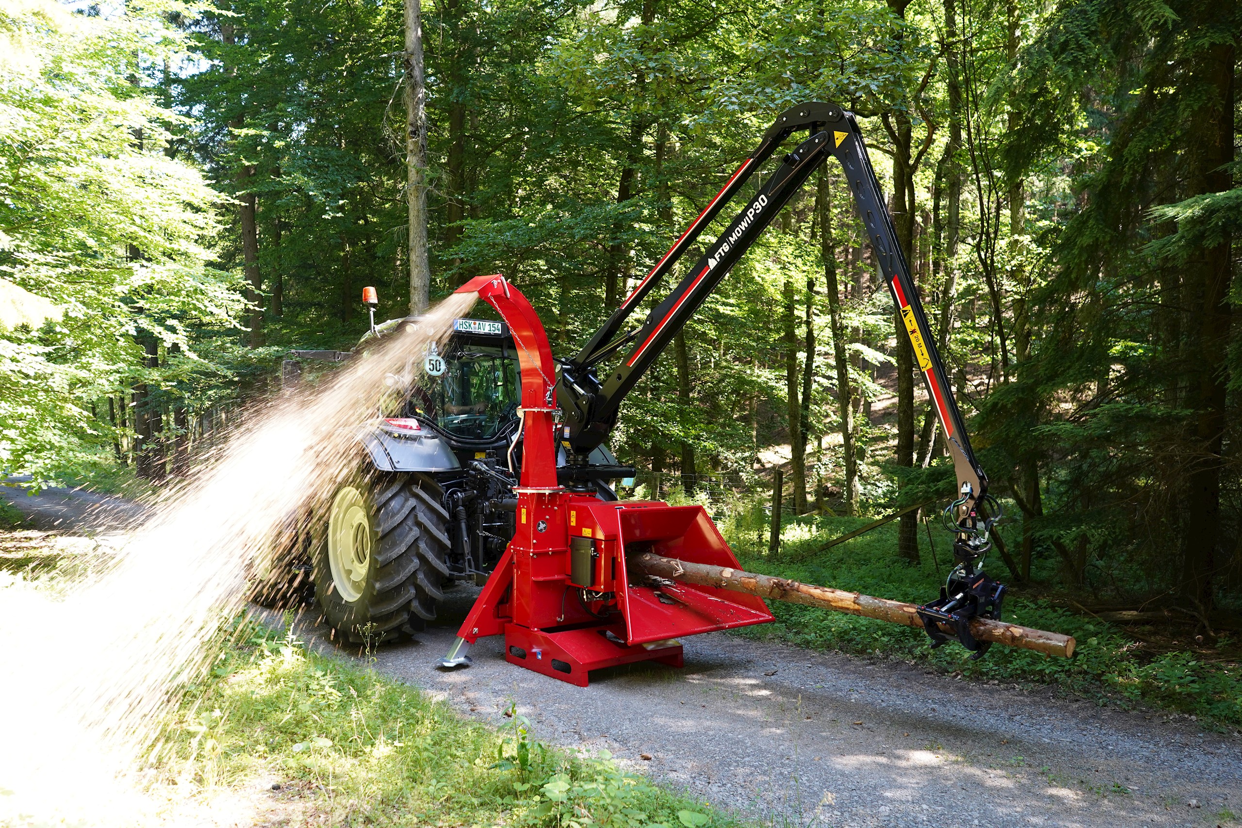 - TP 250 PTO is a disc chipper with hydraulic infeed - efficient for clearing and chipping of branches and whole trees up to 250 mm in diameter